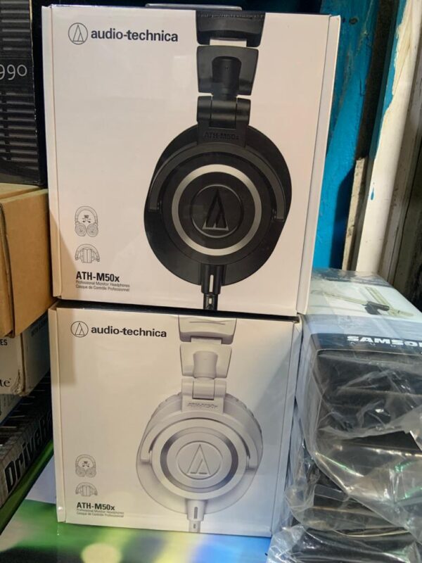 Widely acclaimed for their sonic performance, one-ear monitoring capability, and foldable, travel-friendly design, the white Audio-Technica ATH-M50xWH M-Series monitor headphones offer pro-grade build quality and audio performance for professional studio-based production, location recording, DJing, podcasting, and daily listening. Outfitted with 45mm large-aperture dynamic drivers and an over-ear, closed-back design, the ATH-M50xWH headphones deliver clarity, deep bass, and extended bandwidth (15 Hz to 28 kHz) while isolating you from outside sounds.