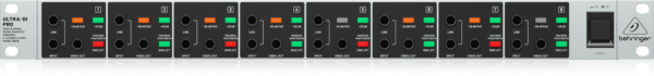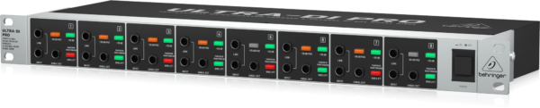 The ULTRA-DI PRO DI800 from Behringer is an eight channel professional Direct Injection box, equally suited to both studio use, and for live applications. The unit converts unbalanced line inputs into balanced outputs, and features mains or phantom powered operation.