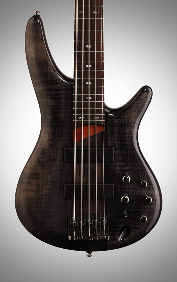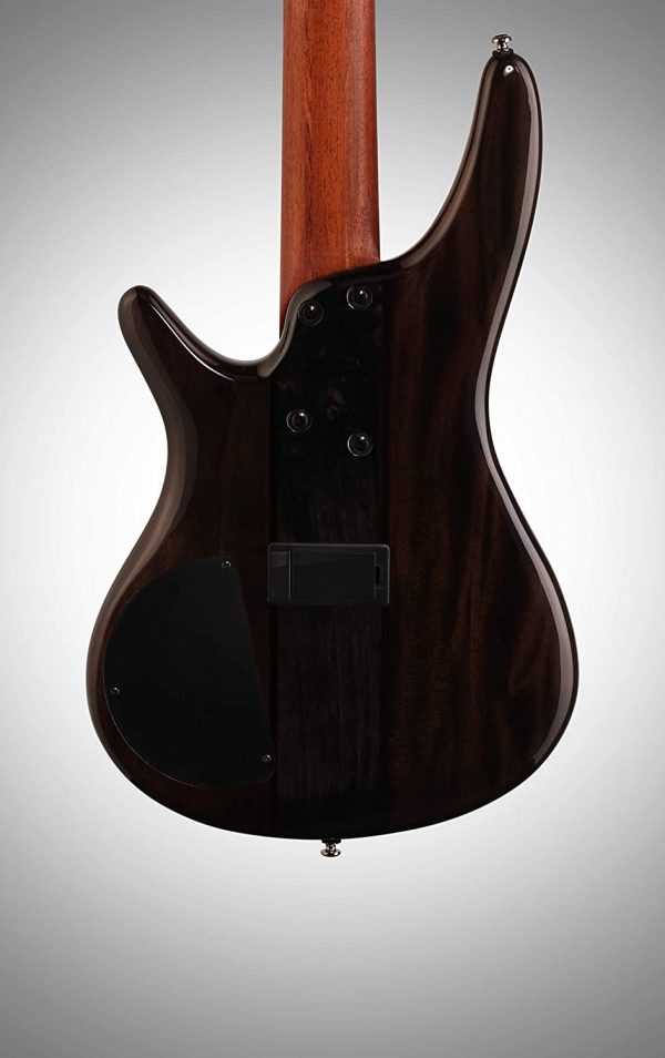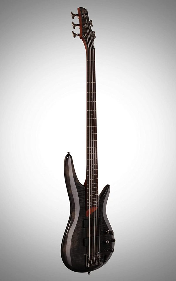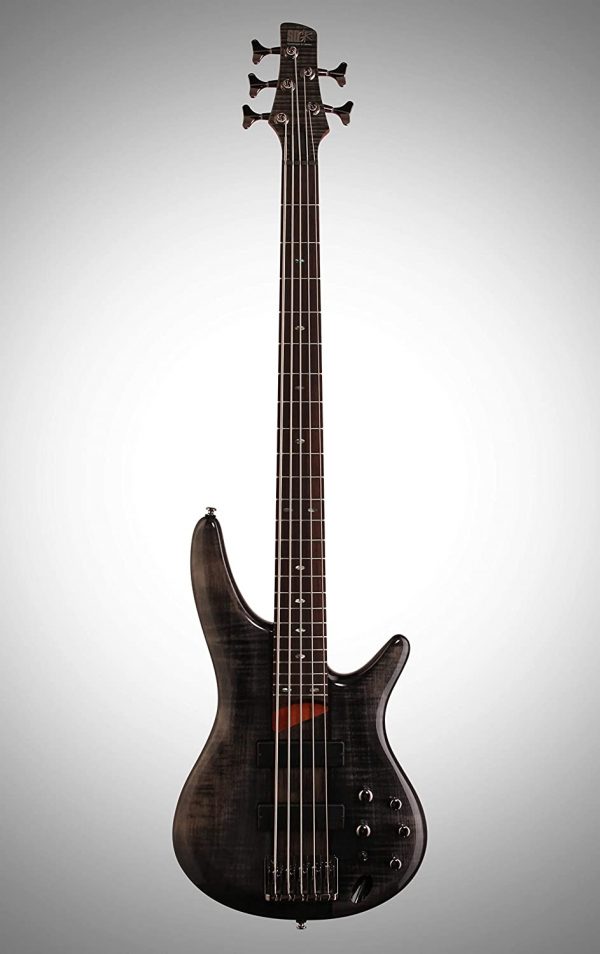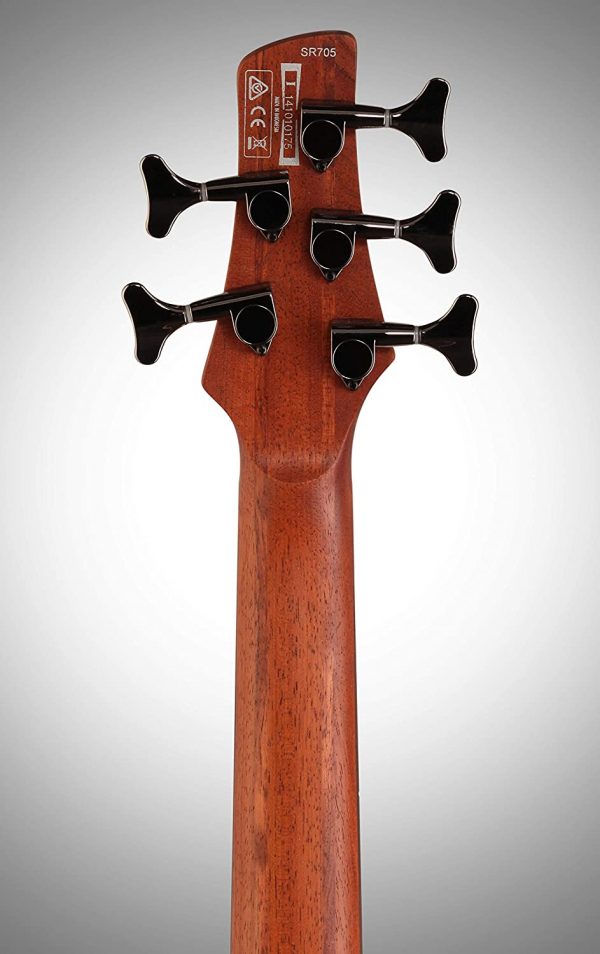 The 5-string Ibanez SR705 Electric Bass delivers clean, punchy bass tone in a sleek package. Its mahogany body with figured maple top and 5-piece jakota and bubinga bolt-on neck enhance resonance and attack.