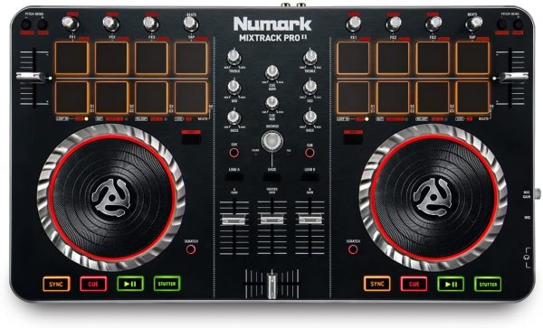 From Numark, the world’s leading creator of DJ technology, comes Mixtrack Pro II—now with a streamlined design and an expanded layout of professional controls, including 16 backlit multifunction drum pads and illuminated touch-activated platters. With Mixtrack Pro II, you get everything you need to DJ with your computer: hot cues, looping, and effects controls, a built-in professional DJ audio interface, plus Serato DJ Intro software.