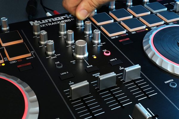 - Complete mixer section with a crossfader, 3-band EQ, and music library navigation controls
