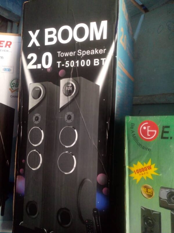 2.0 tower speaker features • mp3 playback from usb and card • bluetooth • built in amplifier • fm radio function • 2 microphone input • speaker units: full range: 5” • speaker units: woofer: 8” • output power: 2000w • impedance: 4 ohms • sensitivity: 90db=3db • power supply: 230v/50hz